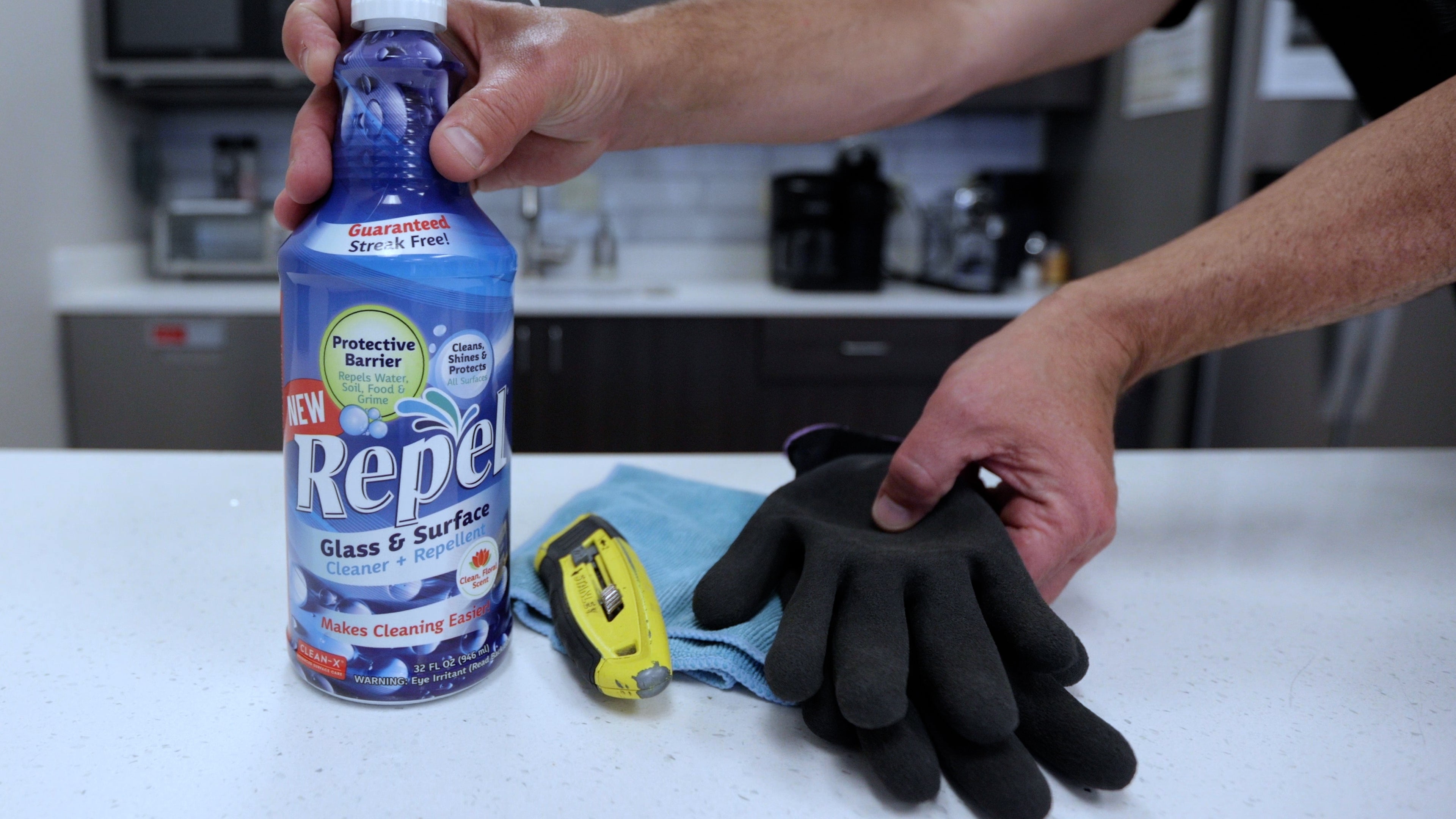 A microfiber cloth, a pair of gloves, cutting tool and glass cleaner are recommended for set-up.