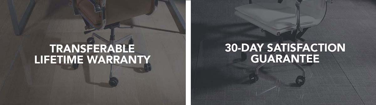 For over 12 years, Vitrazza has built a reputation for delivering quality products and standing by those products with a satisfaction guarantee, meaning if you’re not completely excited to eliminate plastic chair mats from your life, we’ll give you a full refund and provide a pre-paid shipping label for you to return your Glass Chair Mat to us. We are so confident in our Glass Chair Mats that each one comes with a Transferable Lifetime Warranty that covers any defects or design flaws that would cause it to break.