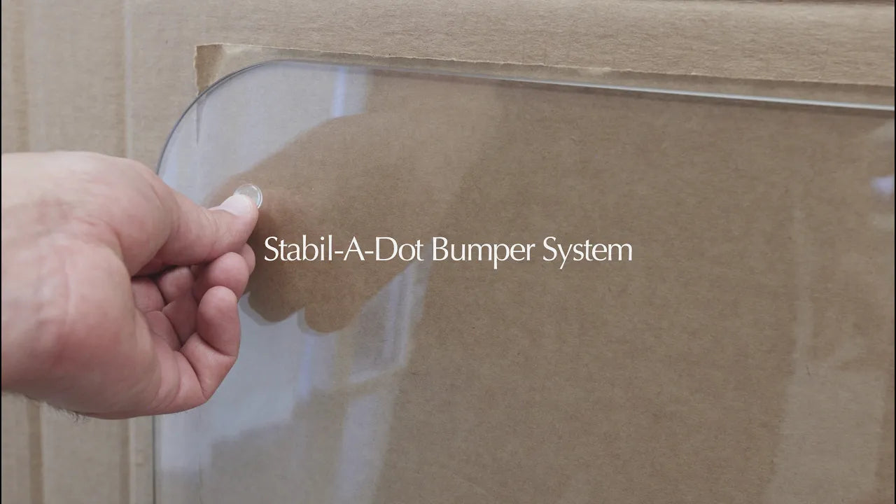 If you've moved your Vitrazza Glass Chair Mat, changed flooring or for any other reason need a new kit with our exclusive Stabil-a-dot Bumper System, we've got you covered. Designed to enable the use of a Glass Chair Mat on any kind of floor and to resist 'mat creep'. Quick and easy online ordering. Free Shipping. Everything you need in one kit - contents include: